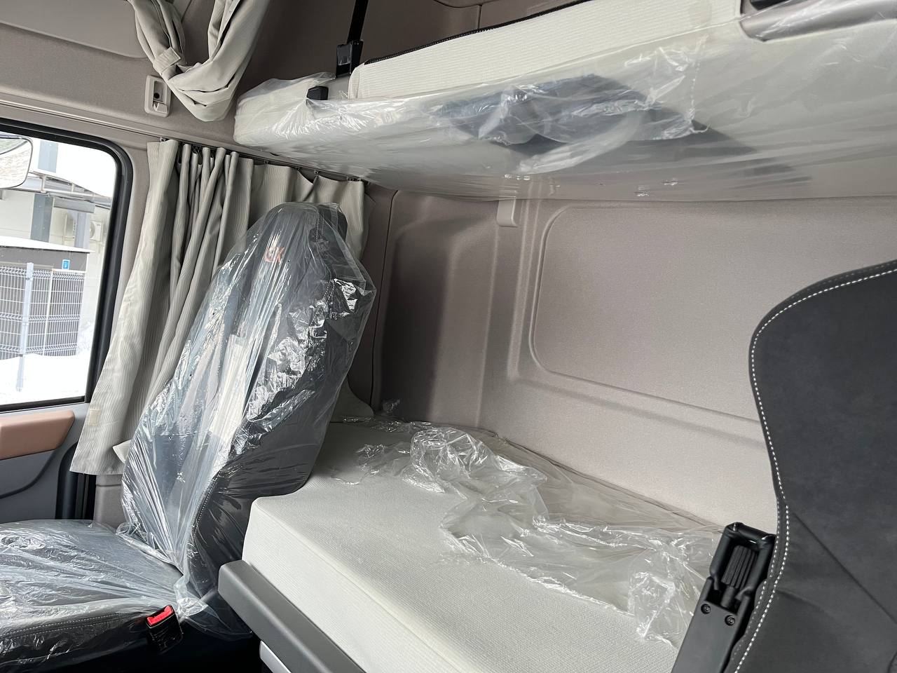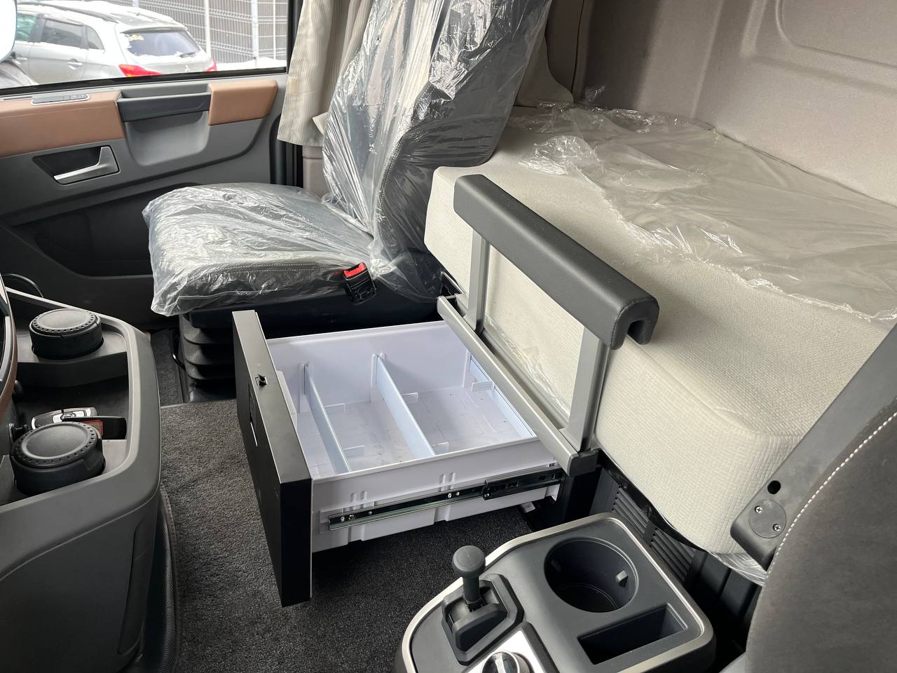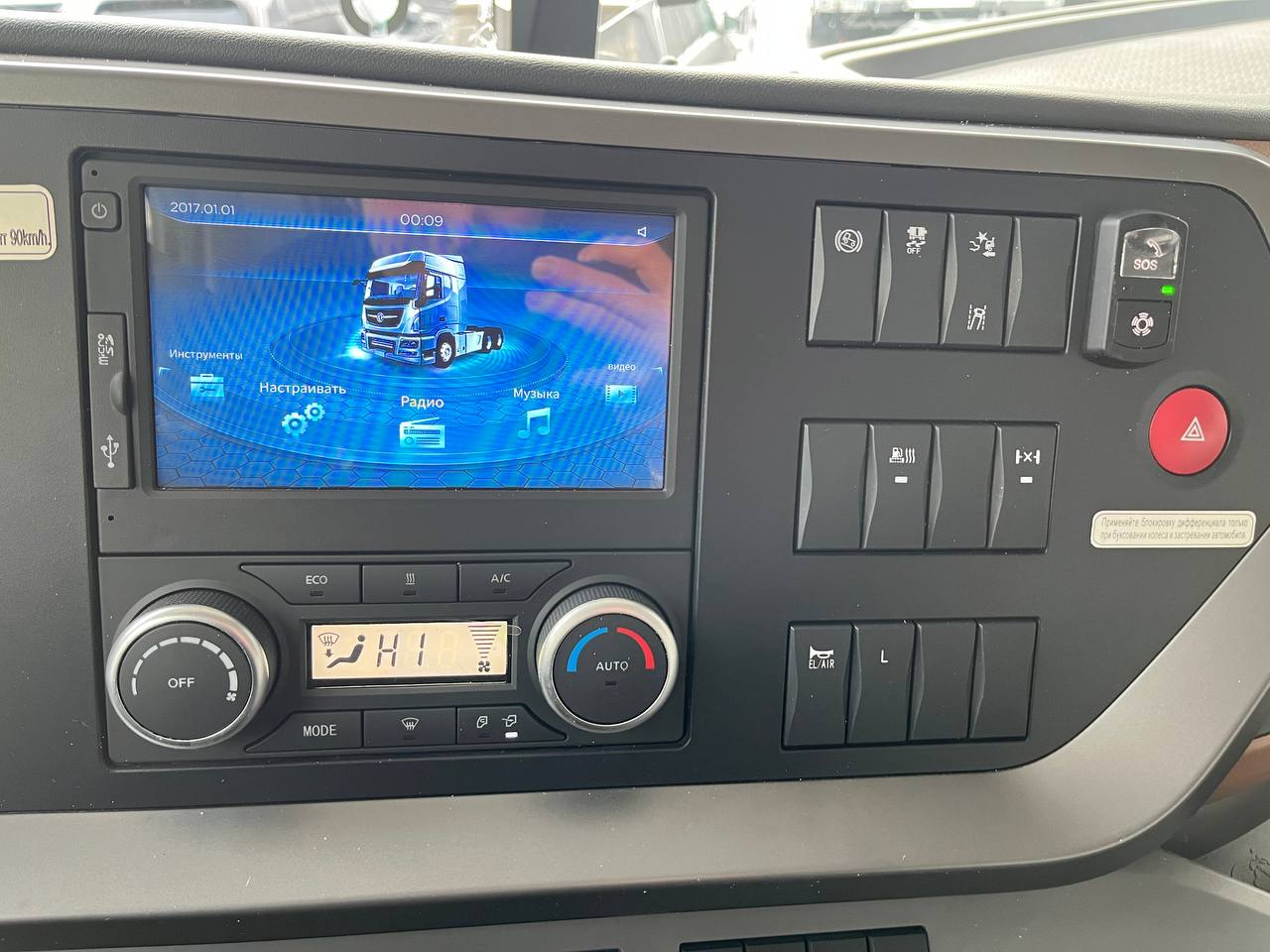 Кабина Односпальная, ровный пол, пневматическая амортизация передней и задней подвески, гидравлический электрический подъем кабины, трехступенчатый шаг, дефлектор верхней крышки и боковой спойлер, цветное многослойное лобовое стекло, закаленные дверные и оконные стекла, люк в крыше, центральный замок с дистанционным управлением, автоматический кондиционер, сиденье водителя с амортизацией подушек и с подогревом и вентиляцией , трехточечный ремень безопасности, сиденья с амортизацией подушек для пассажиров, 7-дюймовая ЖК-панель приборов, 7-дюймовый ЖК-мультимедийный дисплей, регулируемое рулевое колесо, кожаное рулевое колесо, bluetooth, шторы, Солнцезащитный козырек, солнцезащитный козырек со стороны водителя, 2 пепельницы, держатель для стакана диаметром 80 мм, ESC, LDWS, холодильник, USB-разъем, инвертор мощностью 1000 Вт, круиз контроля, панорамная камера на 270 градусов, треугольный стоп-блок, разъем, трехступенчатый бампер