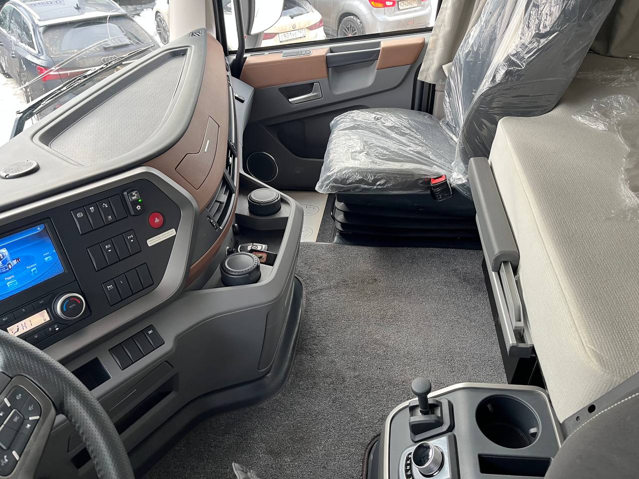 электрическое опрокидывание кабины, пневматическая подвеска кабины, регулируемое сиденье водителя, автоматическая система кондиционирования воздуха, автономный отопитель кабины, электрические стеклоподъемники,